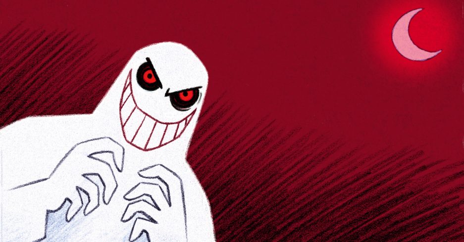 Månen lyser gjennom vinduet og Ingrid og Ivar sitter i sengen. De leser i spøkelsesbøker. Kanskje det finnes spøkelser på loftet? Det er best å sjekke!