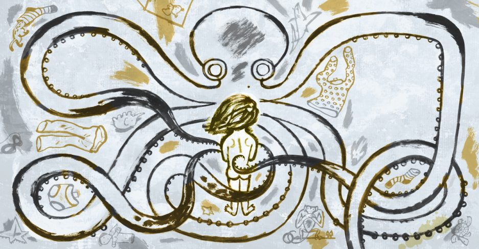 – Hvordan visste du om meg? spør gutten. I stedet for å gå ut sammen med de andre i klassen, har han banet seg vei framover der jeg står med bøkene mine. Han ser grundig på meg som om han leter etter noe i ansiktet mitt. – Har du vært hjemme hos meg? spør han. Jeg rister på hodet. Jeg tror ikke jeg kjenner ham, tror ikke jeg har sett ham før. Han er bare en av mange i en stor gymsal ved en skole på et ukjent sted. Kanskje går han i femteklasse, kanskje sjette, og jeg har akkurat lest opp Blekkspruten for mellomtrinnet med bildene på storskjerm. Bildene har mannen min, Svein Nyhus, lagd. Jeg har skrevet teksten. Det er en bildebok om incest, hvor et barn som blir kalt Gullet blir fanget av Blekkspruten.