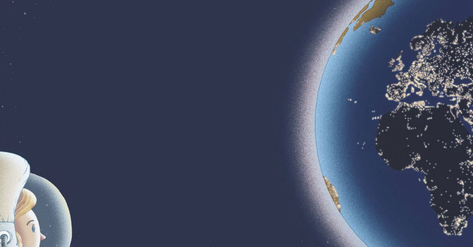 Om natten er himmelen svart fordi det ikke er noe lys som møter luften. Sånn ser himmelen også ut oppe fra månen eller den internasjonale romstasjonen: kullsvart. Der oppe er det ikke luft som kan spre lyset. Bare tomhet.