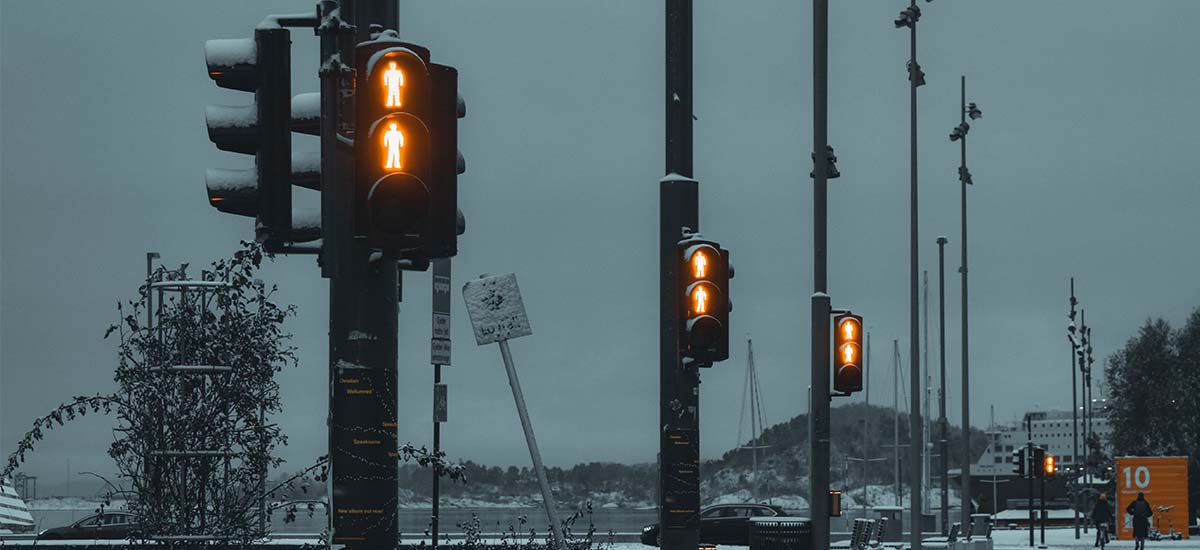 Foto av fotgjengerovergang i Oslo på vinterstid